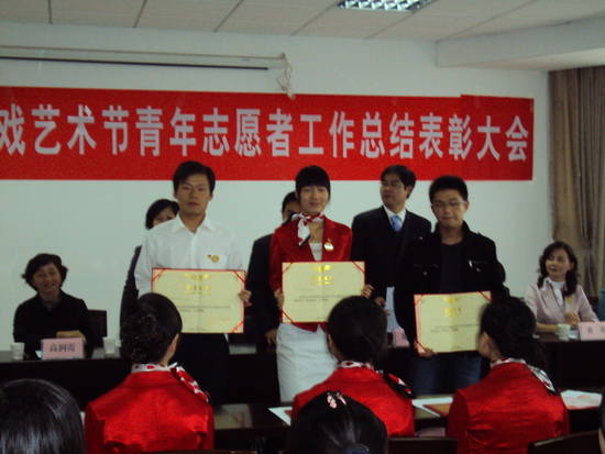 功夫不负有心人,我院学生志愿者以热情大方的形象和亲切周到的服务为此次盛会增光添彩,他们的工作赢得了团市委和艺术节筹委会的肯定,获得了与会嘉宾和社会各界的一致赞誉。117日,团市委和艺术节筹委会召开表彰大会,我院团委获得艺术节青年志愿者组织先进集体奖,3名学生获得艺术节优秀青年志愿者称号。