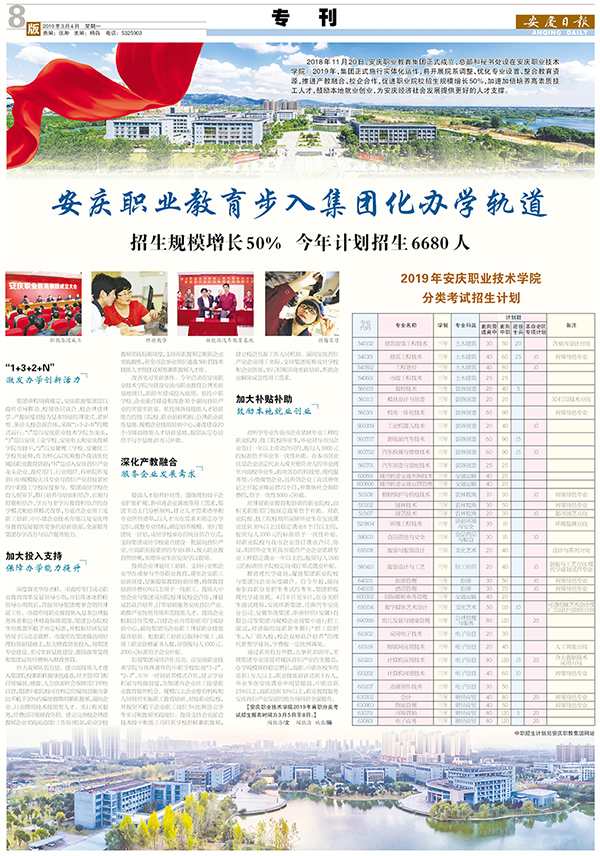 2018年11月20日,安庆职业教育集团正式成立,总部和秘书处设在久久久一区二区三区|亚洲精品一区二区三区不|久久av网|精品国产一区二区三区久久久久久|午夜精品av|久久久久久久久久久久久久av|日韩亚洲欧美综合。2019年,集团正式施行实体化运作,将开展院系调整、优化专业设置、整合教育资源,推进产教融合、校企合作,促进职业院校招生规模增长50%,加速加倍培养高素质技工人才,鼓励本地就业创业,为安庆经济社会发展提供更好的人才支撑。
