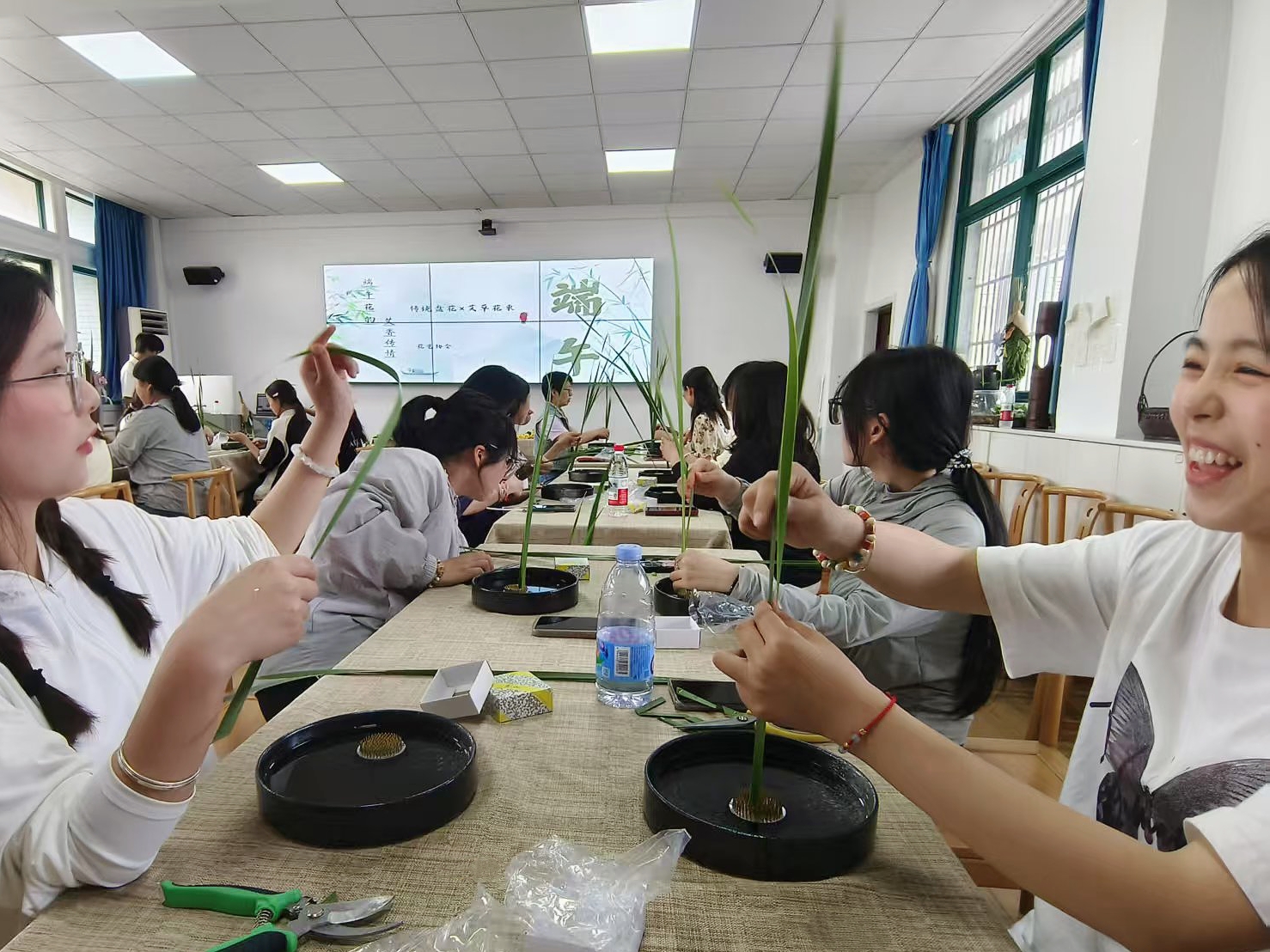 为弘扬中华优秀传统文化,丰富学院师生校园文化生活,5月30日,农林与服装学院花艺爱好者协会在花艺教室举办端午花韵 艾香传情主题插花体验活动。30余名师生通过插制传统盘花、创作艾草花束,在花香馥郁中感受传统文化的独特魅力。