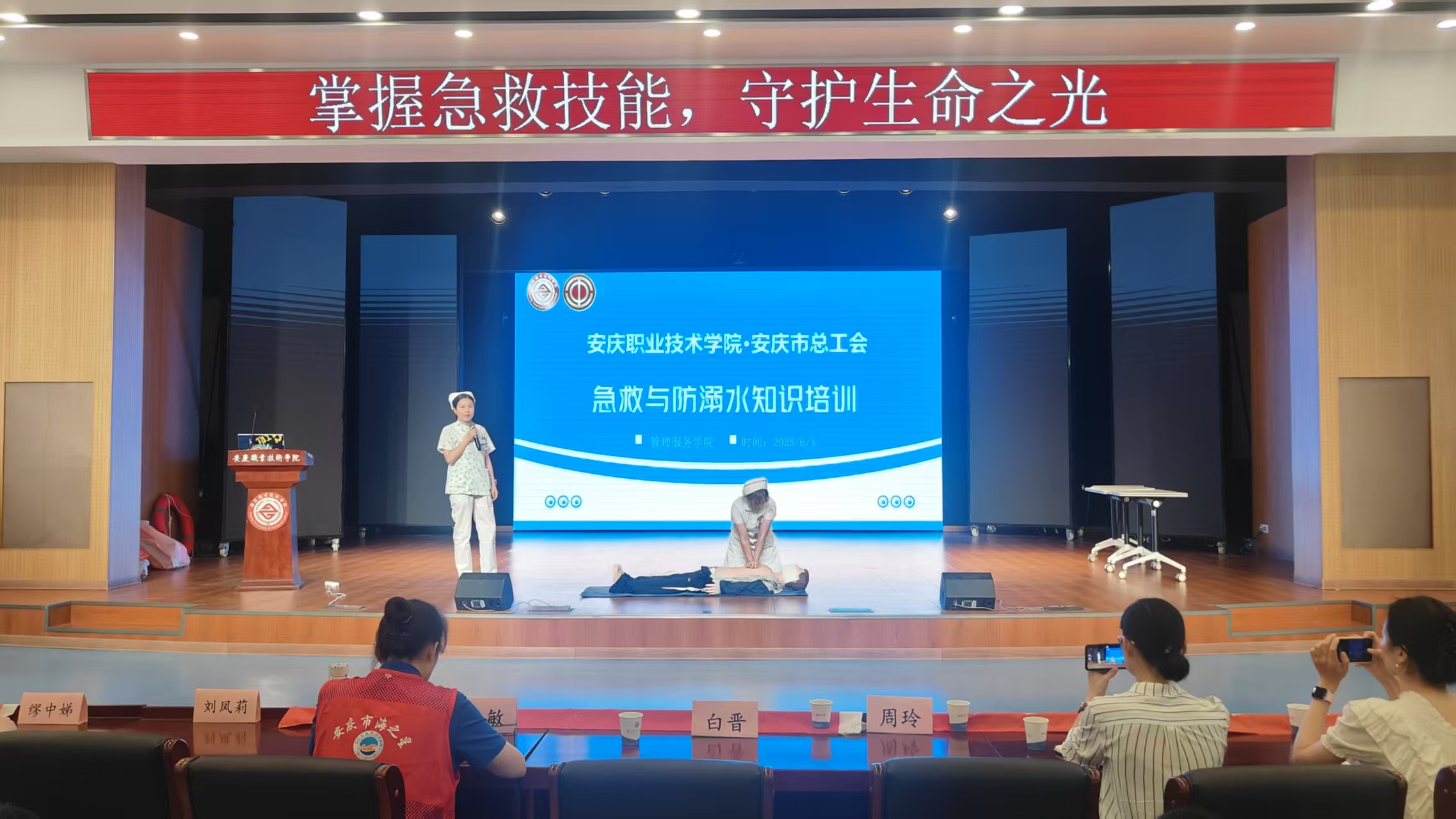 暑期将近,为增强师生安全意识,全面提升师生应急救护能力,6月4日,久久久一区二区三区|亚洲精品一区二区三区不|久久av网|精品国产一区二区三区久久久久久|午夜精品av|久久久久久久久久久久久久av|日韩亚洲欧美综合管理服务学院联合安庆市总工会,共同举办了一场以“防溺水与应急救护知识”为主题的专题培训。活动特邀专业师资,通过案例剖析、技能演示与沉浸式实操演练,为师生送上实用的生命守护技能,有效提升应对突发事件的应急处置能力。安庆市总工会职工学校副校长白晋、校继续教育学院院长姚咏、管理服务学院学生工作负责同志、专兼职辅导员老师与160余名在校学生参加培训。