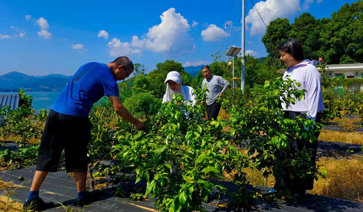 在橘子洲生态园的柑橘种植区,工作室成员针对果农提出的老果园改造、树苗成活率低等常见技术难题,给予了系统解答和现场示范。他们从建园规划、土壤改良、水分管理等方面提出了一系列科学建议,介绍了生态友好的栽培管理方法,帮助果农提升果园管理水平,增强果树抗逆能力。针对夏季高温干旱天气,工作室成员还重点讲解了果园抗旱保湿、树体保护及病虫害防治等关键技术,指导果农采取合理措施减轻极端天气对果树生长的影响,为柑橘稳产丰收提供技术保障。