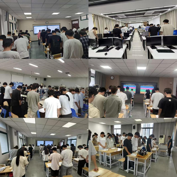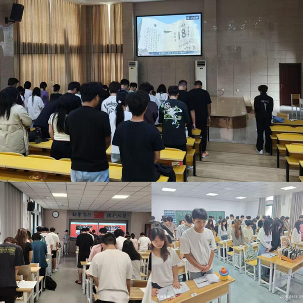 9月18日上午9时18分,防空警报声响彻校园。建筑工程学院全体师生无论在教室、实训室还是宿舍楼下,均自发停下手中工作与学习,肃立默哀。这一刻,时间仿佛凝固,无声的哀思与崇高的敬意在空气中流淌。这庄严的仪式,既是对中华民族血泪记忆的理性追溯,也是对英雄烈士、遇难同胞们的深切缅怀,警示师生从历史的回响中汲取力量,砥砺前行。