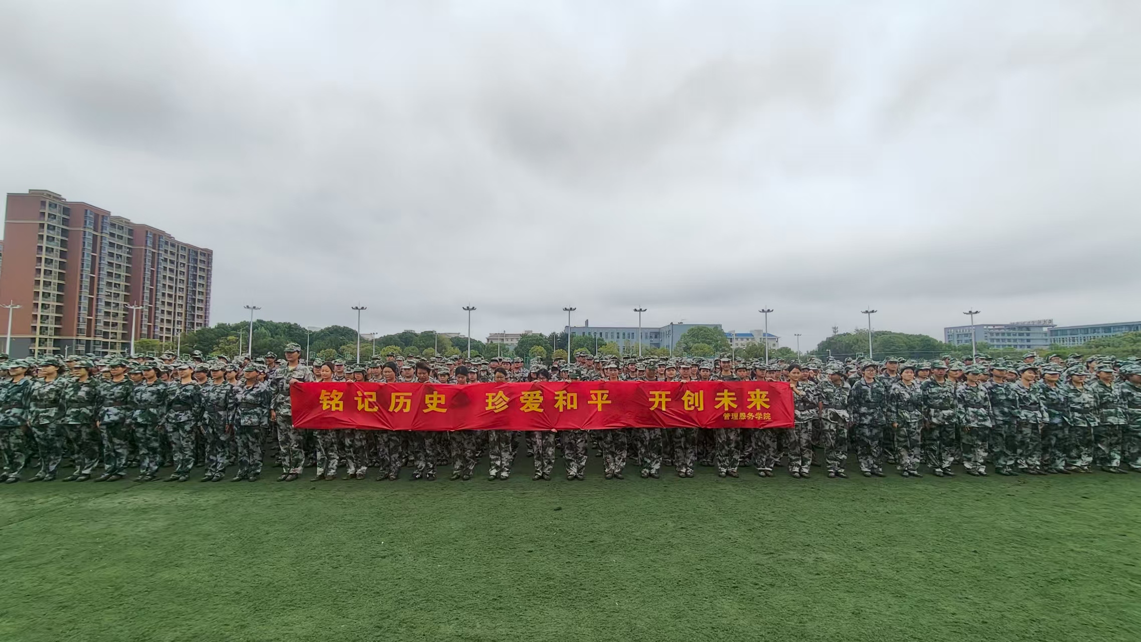 在军训场地,庄严肃穆,全体2025级新生、军训教官及辅导员共计600余人齐聚操场。上午九点十八分整,防空警报鸣响,全体人员列队肃立,低头默哀,传递对遇难同胞的深切缅怀。