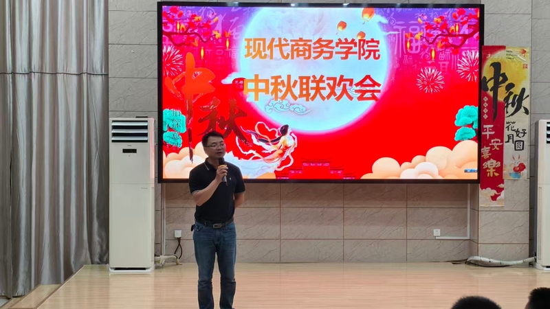 联欢会在温馨愉快的氛围中拉开帷幕。学生工作负责人向全体师生致以节日的问候并向2025级新同学表示热烈的欢迎。他表示,中秋是团圆的节日,许多新同学自五湖四海而来,第一次离开家乡、离开父母,希望同学们尽快度过大学适应期,在现代商务学院这个大家庭彼此扶持、共同进步,与时代主旋律同频共振,奏响青春乐章。