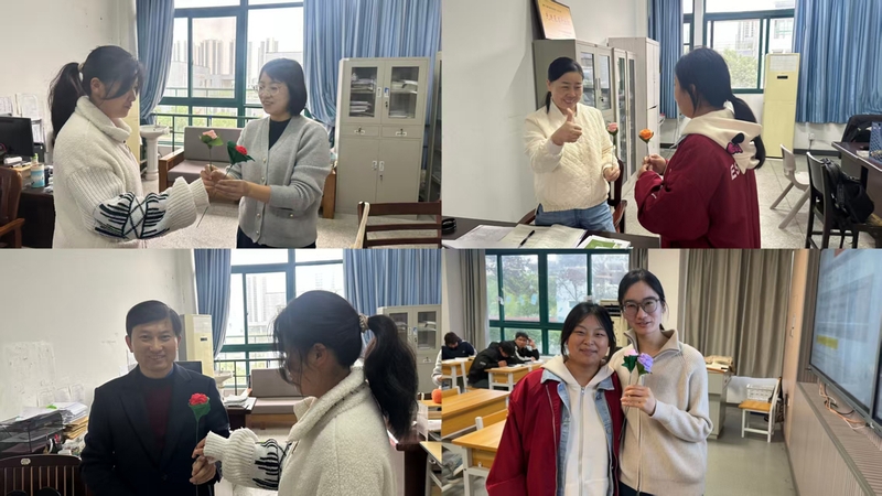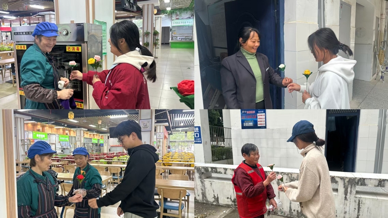 同学们走遍校园的各个角落,将亲手制作的象征感恩与敬意的玫瑰花,送到了授课恩师、校园保安、宿舍管理员和食堂工作人员手中,感谢他们日夜辛勤的付出,守护着校园的安宁与洁净。“收到同学们亲手做的玫瑰花,真的很惊喜、很温暖!”一位食堂阿姨拿着礼物,脸上洋溢着感动的笑容。25级大数据与会计2班王子情同学说:“这次活动给我们提供了一个静下心来、用双手表达情感的宝贵机会。”